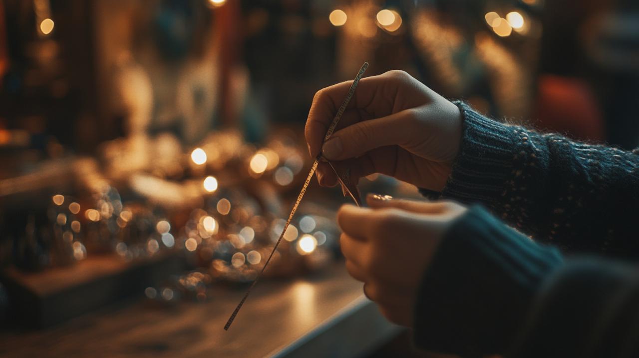 Le ruban de papier représente une alternative efficace pour mesurer la taille de bague à domicile. Pour cette méthode, découpez une bande de papier d'environ sept à huit centimètres de longueur et cinq millimètres de largeur. Enroulez cette bande autour de la base du doigt destiné à recevoir la bague, en vous assurant qu'elle glisse facilement mais qu'elle rencontre une légère résistance. Marquez l'endroit où le papier se chevauche, puis mesurez cette longueur avec une règle. Cette technique demande toutefois certaines précautions : le papier ne doit pas être trop épais pour ne pas fausser la mesure, et il convient de réaliser cette opération plusieurs fois pour vérifier la cohérence des résultats. Cette méthode s'adapte parfaitement à tous les types de bagues, qu'il s'agisse d'un solitaire en or recyclé, d'une alliance éthique ou d'une création artisanale ornée d'un diamant. Les bijouteries proposant des pièces avec garantie à vie recommandent cette technique pour les mesures préliminaires avant une visite en boutique.